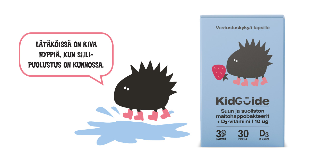 KidGuide sopii myös raskausaikana äidille suun ja suoliston hyvinvointiin ja näin äiti myös varmistaa hyvien bakteerien siirron lapselleen. KidGuide on kehitetty ja valmistettu Suomessa.